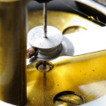 Auf der Zeigerachse sitzt eine Aluminiumscheibe, die in dem Luftspalt eines starken Dauermagneten spielt und durch Wirbelströme die Zeigerbewegung sicher dämpft.