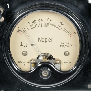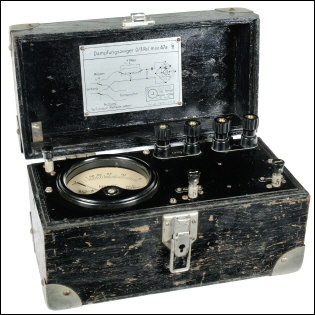Der Dämpfungsanzeiger dient in Verbindung mit einem Normalgenerator (Rel sum 24 a) zur unmittelbaren Anzeige der Restdämpfung von Vierpolen, besonders aber zur unmittelbaren Anzeige der Restdämpfung von Teilnehmeranschlussleitungen und kurzen Fernleitungen, für die im allgemeinen in den Ämtern keine fest eingebauten Überwachungseinrichtungen vorgesehen sind. Der Dämpfungsmesser wird in Neper- (dieses Exponat) oder Dezibel-Eichung ausgeführt. |