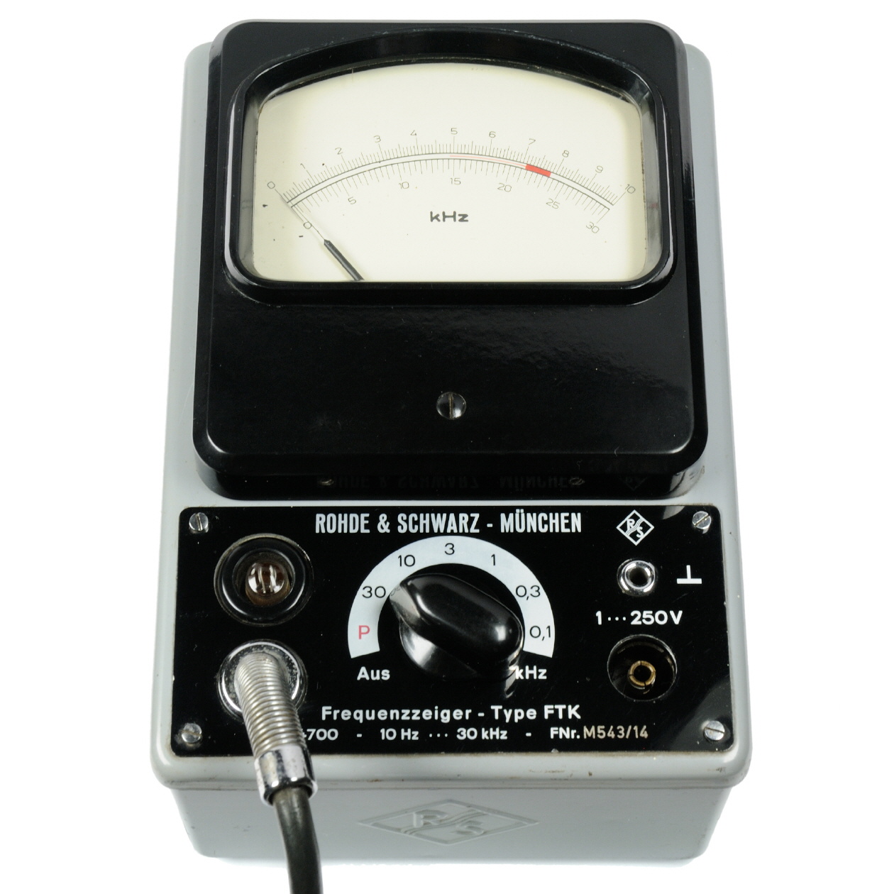 In der Nieder- und Tonfrequenztechnik wird oft ein Frequenzmesser benötigt, der das Messergebnis ohne weiteres direkt anzeigt. Er soll genügend empfindlich und von der Größe und Kurvenform der Messspannung in weiten Grenzen unabhängig sein. Der Frequenzzeiger FTK erfüllt diese Forderungen in idealer Weise. Nicht sehr viel größer als eines der üblichen Vielfachinstrumente für Strom- und Spannungsmessung lässt er sich ebenso einfach wie diese handhaben. Die Messgenauigkeit ist dabei sehr gut, so dass der Messtechniker mit dem FTK nicht nur ein einfaches, sondern auch genaues und zuverlässiges Messgerät erhält, welches ihm seine Arbeit sehr erleichtert. Bei der Messung hoher Frequenzen nach dem Interferenzverfahren lässt sich das Gerät auch zur unmittelbaren Anzeige der Differenzfrequenz verwenden. Hierbei kann man zum Beispiel Frequenzschwankungen direkt beobachten und ablesen. Eine Erweiterung seiner Anwendungen erfährt das FTK als Drehzahl- oder Hubzahlmesser bei der Verwendung von lichtelektrischen oder kontaktgesteuerten Abtastern.