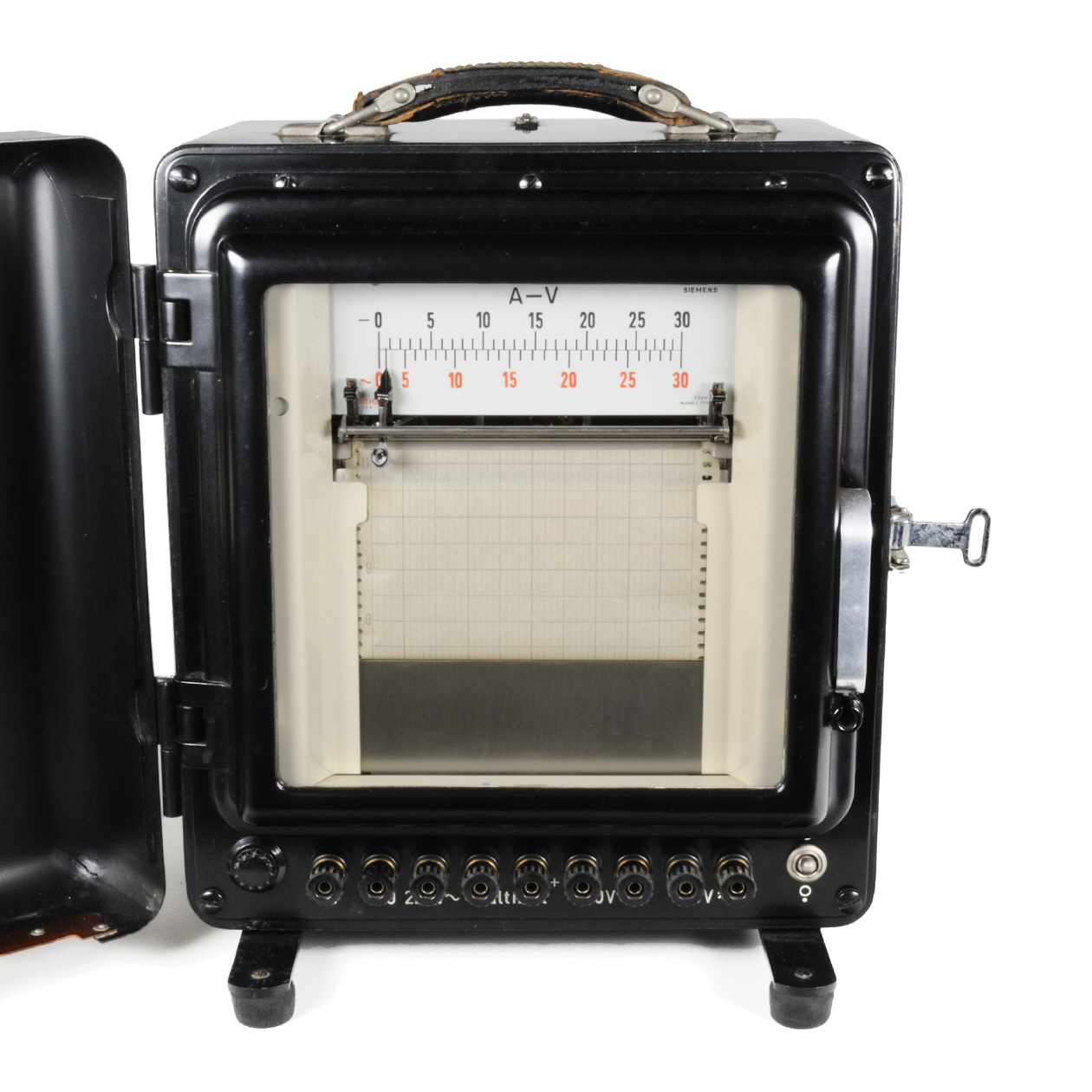 Der Schreiber selbst sitzt in einem inneren, abgedichteten Gehäuse mit einer Fronttüre mit Glasfenster. Dieses Gehäuse ist zusätzlich in einem zweiten massiven Gehäuse aus Stahlblech eingebaut. Die Anschlussklemmen sind vorne unterhalb des inneren Gehäuses angebracht und können über Klemmen auch bei geschlossener Fronttür genutzt werden. Oben befindet sich ein großer Tragegriff aus Leder, rechts noch eine zusätzliche massiv ausgeführte Erdungsklemme. Als Messwerk ist ein Multizet L 10W1 eingebaut, zusätzlich befindet sich noch ein mit einer EL 42 Röhre bestückter Messverstärker im System. |