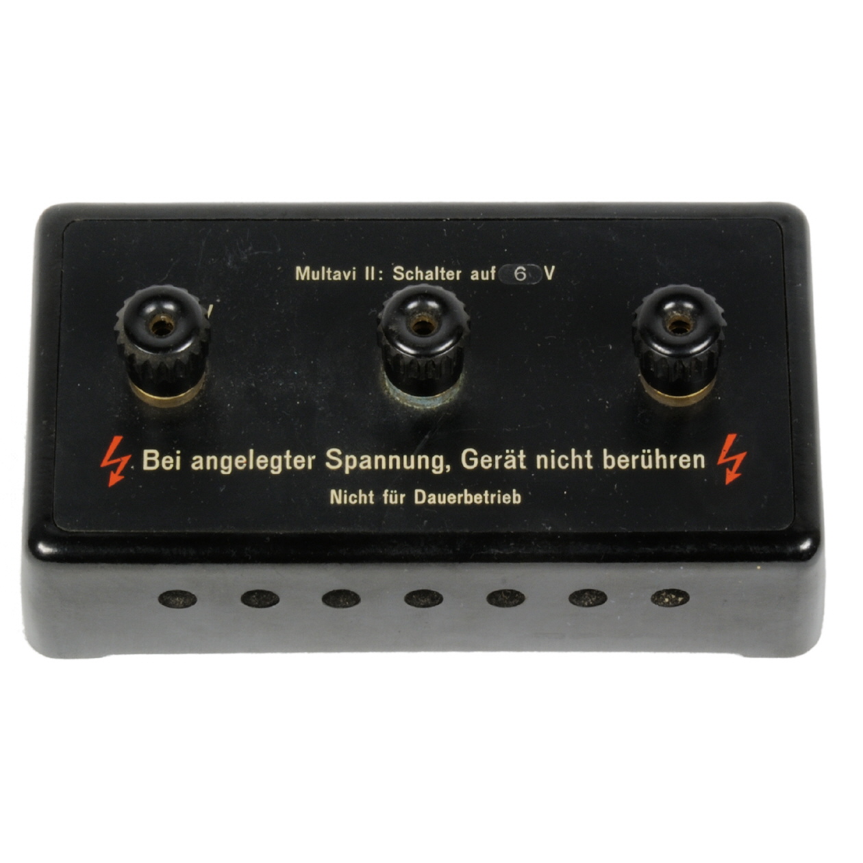 Der optische Zustand ist sehr gut, geringe Gebrauchsspuren. Der Boden ist lose, zwei Schrauben am Boden fehlen. Die Funktion entspricht den Spezifikationen, konnte jedoch Mangels Hochspannungsquelle nicht geprüft werden. |