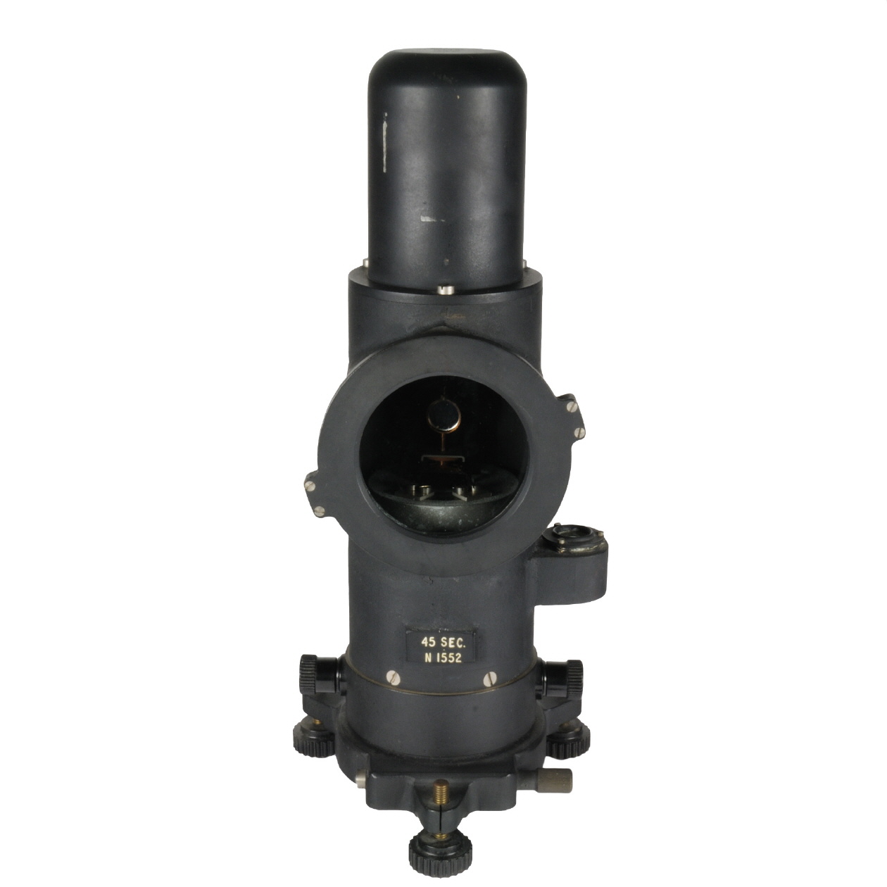Das Galvanometer befindet sich in einem optisch und technisch sehr guten Zustand. Die Oberfläche weist geringe Beschädigungen in der Lackierung auf. So wie die Schrauben aussehen, wurde das Gerät nie geöffnet, Plomben oder Siegel existieren nicht. Das Messwerk befindet sich in einem sehr massiven Gußgehäuse, das hermetisch dicht ist. Der Sockel ist aus Messing, der Mittelteil aus einem Leichtmetallguß (seit den 30er Jahren im Flugzeugmotorenbau verwendet). Das Frontglas ist schräg nach hinten versetzt eingebaut - in Bezug auf die Ebene der Frontabdeckung - dies verhindert Spiegelungen und verbessert die Präzision bei der Anzeige. Die horizontale Ausrichtung erfolgt über Stellschrauben in den drei Füßen, auf der rechten Seite findet sich eine Libelle. Die Ausrichtung zur Anzeigeeinheit kann über die Schraube vorne im Fußteil fein justiert werden. Das Messwerk kann zum Transport mit einem kleinen Hebel auf der Rückseite des Geräts fixiert werden. Entsprechend dem Aufbau des Geräts ist dieses nicht für den Laboreinsatz konstruiert worden sodern für deutlich rauhe Arbeitsumgebungen. |