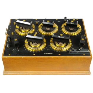 Liste VII über Elektrische Meßinstrumente, 1931, Seite 30 Thermokraftfreier Kompensationsapparat mit fünf Dekaden und konstantem kleinen Widerstand. Von H. Diesselhorst in Charlottenburg. (Mitteilung aus der Physikalisch-Technischen Reichsanstalt.); Zeitschrift für Instrumentenkunde, XXVIII. Jahrgang, Januar 1908 (ZIK 1908 1) |