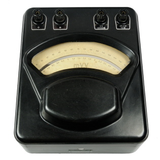 Über den Messbereichschaltkasten können die Meßbereiche 0,15, 0,6, 3, 6, 30, 150, 300, 600 V ausgewählt werden.