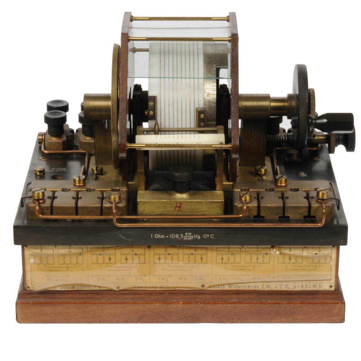 Originalzustand, vollständig. Die Oberfläche hat nur geringe Gebrauchsspuren, aber keine Defekte. Das Abdeckglas der Marmor-Spindel ist defekt. Elektrisch funktioniert die Messbrücke einwandfrei |