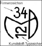 Im Jahr 1924 wurde die Technische Vereinigung der Hersteller typisierter Pressmassen und Pressstoffe (T.V.) gegründet, die spätere Technische Vereinigung der Fabrikanten gummifreier Isolierstoffe. In dem Prüfzeichen identifiziert ein zweistelliger Code über dem stilisierten M das Presswerk, der Code unter dem M die Art der Pressmasse. |