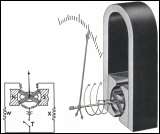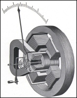 Das Drehspul-Messwerk besteht aus einer Spule, die im homogenen Feld eines kräftigen Dauermagneten um einen Weicheisenkern drehbar gelagert ist. In stromlosem Zustand wird sie durch zwei Spiralfede...